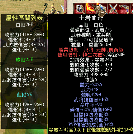8.新增品階系統功能,點擊品階石右鍵移至可使用裝備,會顯示可洗煉區間。(以下為參考圖)