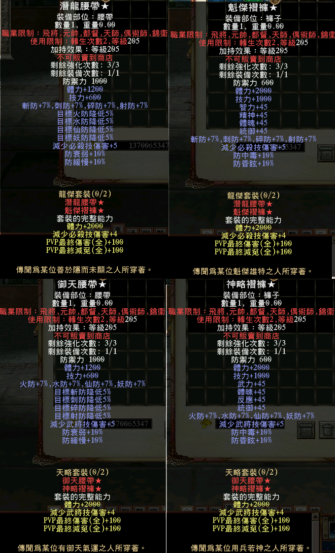 潛龍腰帶、御天腰帶,可至煉造房製作成「潛龍御天★盒(自選)」。(必定綠值)