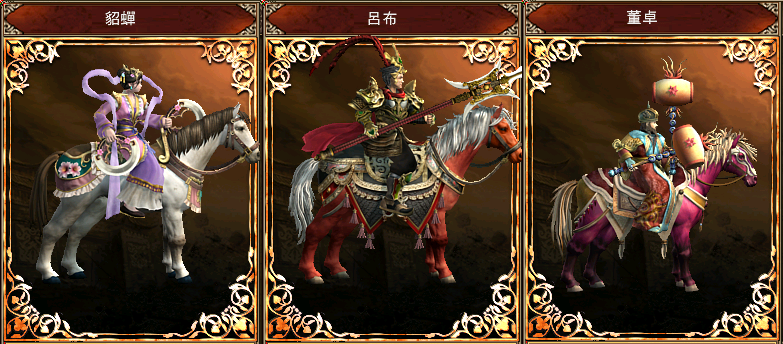 [特別化身說明]「呂布、貂蟬」為外觀強制化身,無法透過裝備類、扮裝類外觀覆蓋外觀顯示。