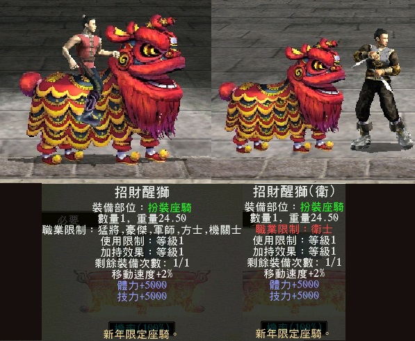 [兌換獎勵]恭喜發財!虎符、生肖馬、生肖馬(衛)、高級群英之星箱、馬踏飛燕之珠、一馬當先之珠、高級化身抽卡券、高級化身抽卡券I、高級化身抽卡券II、高級化身抽卡券III、高級化身抽卡券IV、高級化身抽卡券V、群英之星箱、嘶嘶如意之珠、蛇步青雲之珠、金豬報喜之珠、豬事大吉之珠、金牛迎春之珠、牛轉錢坤之珠、群英之星、搜魂令